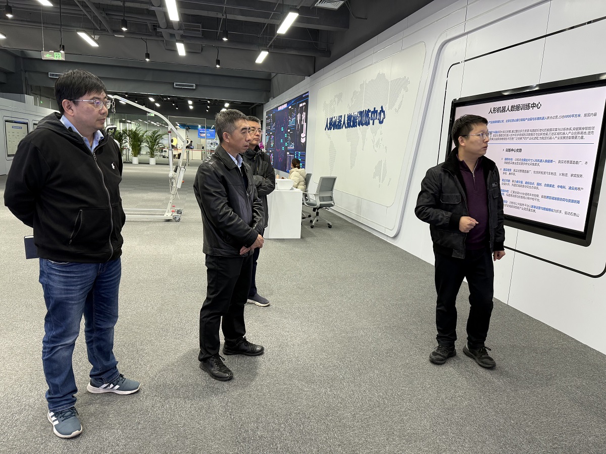 马礼书记带队赴人形机器人数据训练中心调研交流,副院长段建勇、人工智能系主任赵卓峰研究员及王菁副研究员参加了此次活动。